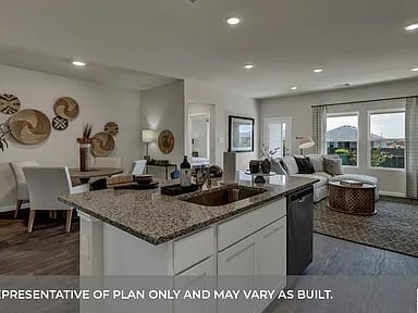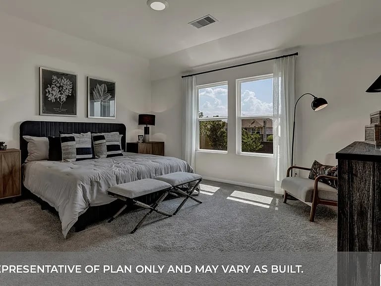 MOVE IN READY! The Harris is a thoughtfully designed floorplan that offers 1,831 square feet of living space across 4 bedrooms and 2.5 bathrooms. As you enter the foyer, you will pass two extra bedrooms and the second bathroom on one side, and the third extra bedroom, utility room, and powder room on the other. Continuing down the foyer you will reach the open concept living space. The kitchen overlooks the dining room and offers a spacious walk in pantry and a large kitchen island, perfect for entertaining. The family room looks out to the covered patio and backyard. Just off the family room is the main bedroom, bedroom 1. This bedroom offers plenty of space, as well as a large walk in closet. The Harris also offers full yard sod and irrigation. This home includes our HOME IS CONNECTED base package which includes the Alexa Voice control, Front Door Bell, Front Door Deadbolt Lock, Home Hub, Light Switch, and Thermostat.